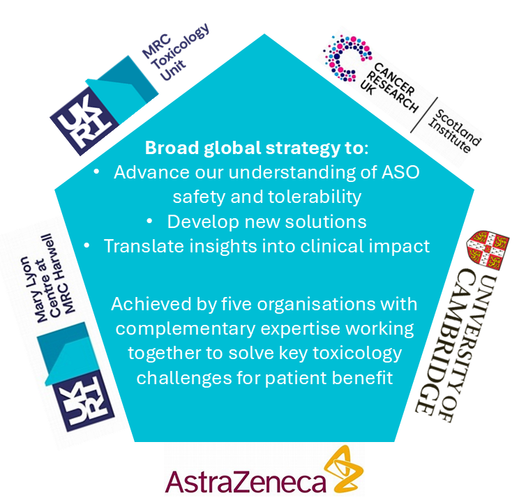 The MRC Toxicology Unit and Department of Biochemistry at the University of Cambridge, AstraZeneca, Cancer Research UK Scotland Institute, and the Mary Lyon Centre at MRC Harwell have been awarded a £3.4 million MRC Prosperity Partnership grant to fund research into understanding the early safety profile of antisense oligonucleotide (ASO) therapeutics. Prosperity Partnerships are funded by UKRI-MRC to support long-term collaborations between academic and industrial partners working at the forefront of emerging therapeutic technologies.