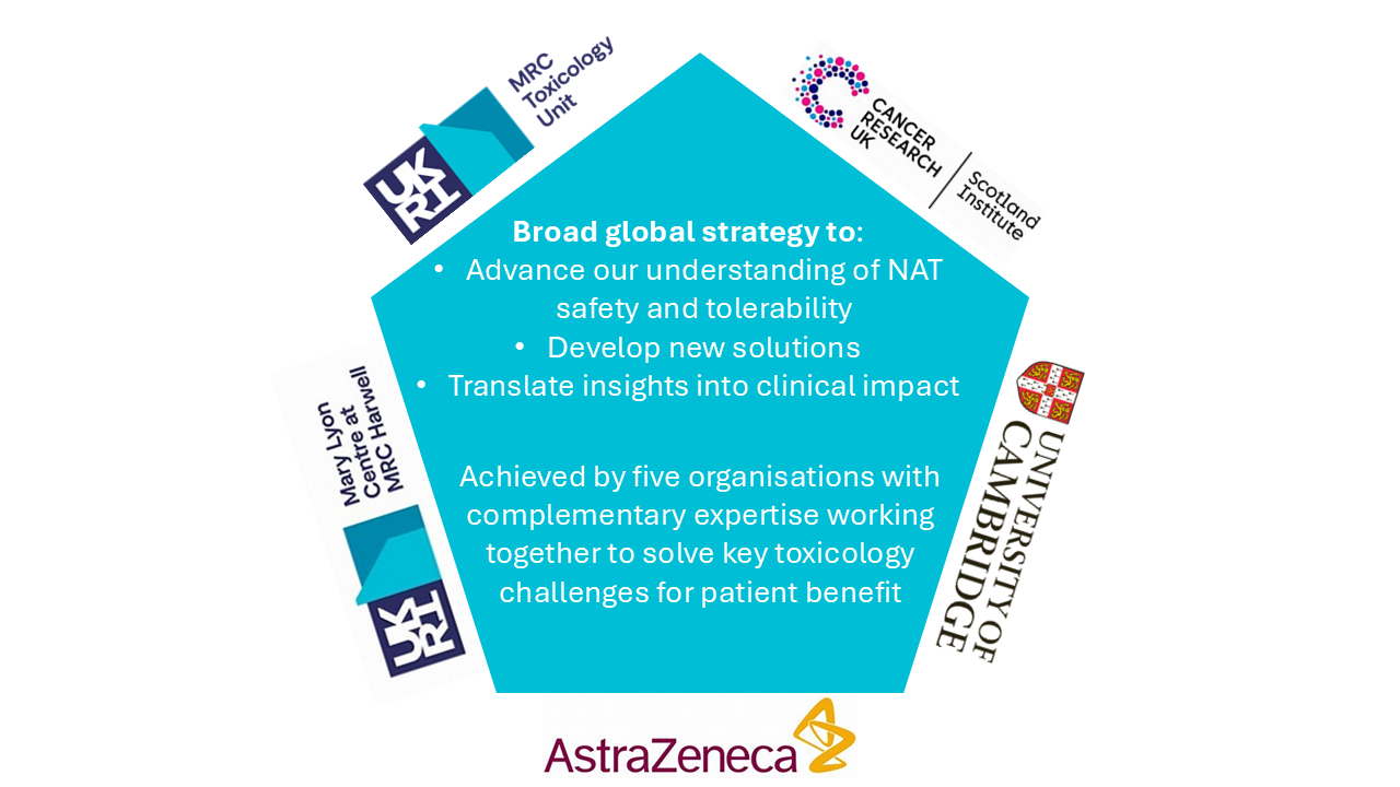 Professor Anne Willis, Director of the MRC Toxicology Unit and academic lead on the partnership, explains the importance of this initiative “A deeper understanding of how NATs interact with our cells and tissues will help us predict if side effects will occur. Our aim is to make NATs safer-by-design, using new tools and methods to reduce safety concerns and thus unlock NATs potential to transform healthcare. This work will complement our recently funded INTREPID (IN vitro TumouR Explant models for evaluating cancer complexity and Patient Diversity) Programme to develop human tumour explant models and support alternatives to in vivo testing”.
